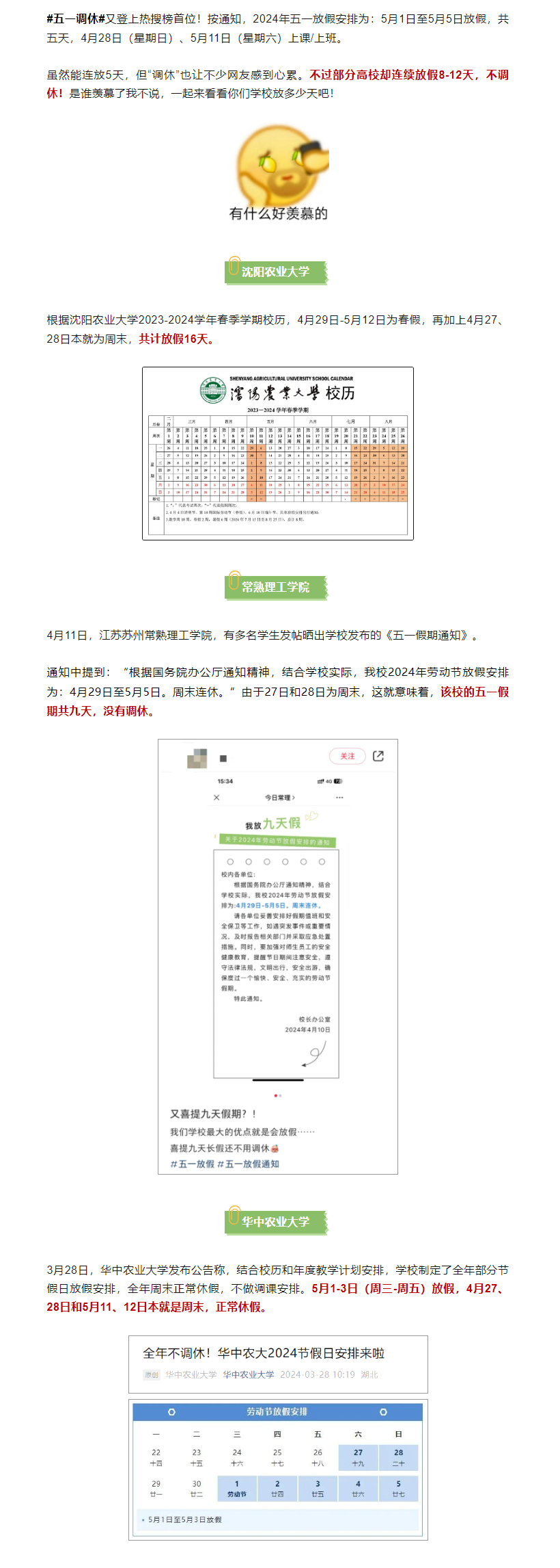 【热门 · 话题】羡慕!有学校五一连放16天假!“放假大学”到底是谁在上?